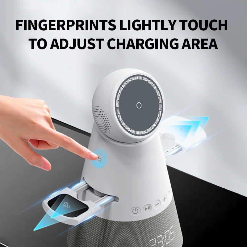 R10 5-in-1 Rotary Touch Wireless Charger with Bluetooth Speaker and Clock